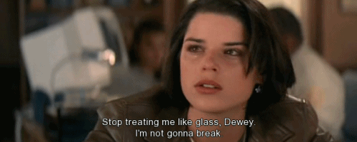 In Scream, we got to explore the rules we all knew existed, but said out loud for the first time by the characters. Most rules, like saying “I’ll be right back” held up, except one, involving our final girl, Sid. The virgin rule. This incredibly sexist rule of slashers, where any girl who has sex or is openly sexual is promptly punished for her sins, is wiped away in this film. Sid discovers that the killer was her James Dean-esque boyfriend, Billy Loomis, all along, and serves up justice of her own, but not before scoring with the sexy serial killer. With Sidney, we have the same sense of trauma, and ptsd for that matter, mostly due to her mother being brutally murdered. She isn’t dealing with things well, and her shitty boyfriend forces her to. Sid is a breathe of fresh air in a sea of desperate, helpless scream queens. She comes back every film, dealing with more and more trauma, but with grace. In the fourth film, she has written a book to help others cope, and in turn has to deal with even more death. The woman can’t get a break, but it’s enough to leave any other woman institutionalized, where Sid just keeps doing what she has to do to survive, and to shine.