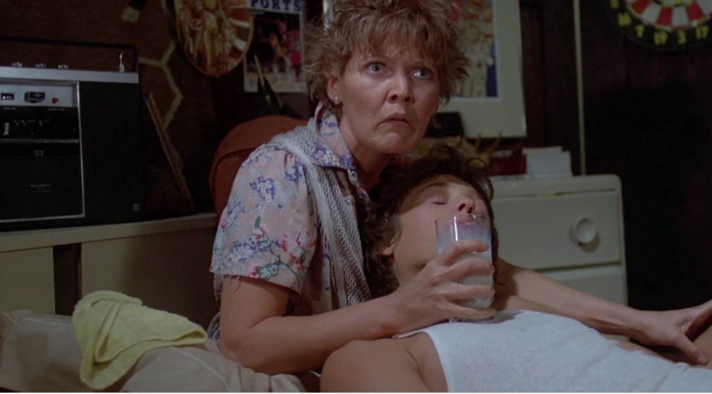 Cheryl has this way of saying everything either sexually or just dramatically aloof. The nephew, Billy, acts like he is perpetually ten years old, but is about to turn seventeen. He asks if his girlfriend, Julie can come over for his party, but creepy aunt says no. “I’m your date” she says, so this is a healthy relationship. Billy is the star of his basketball team, short shorts and all, which angers some of his teammates for some reason, but his coach loves him. He tells Billy that he’s sure he could get a full athletic scholarship if he wanted. Excited, Billy tells his aunt while she’s making dinner, and she acts like he just told her that he likes to kill people. Seriously, he has Paul Allen in a freezer uptown in her mind.